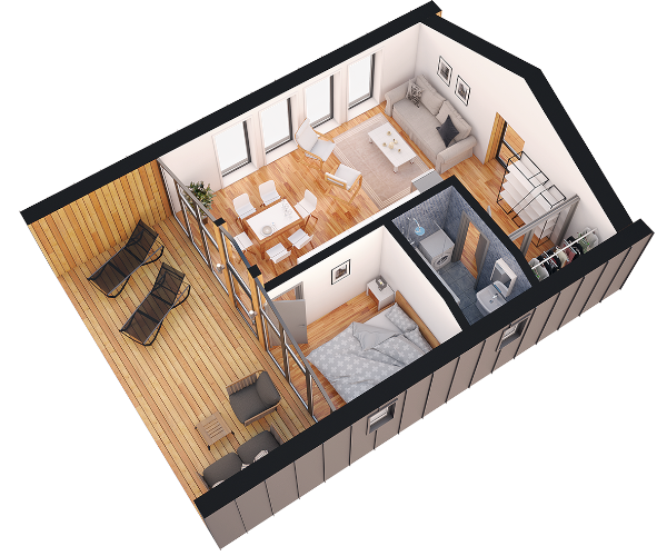 Мы разработали технологию, которая позволяет установить полноценный дом на участке всего за один день и избавить вас от лишних забот. Приобретенный нами за многие годы опыт помог создать проект дома, состоящего из двух модулей, в котором проведены все необходимые коммуникации - останется лишь подключить к внешним сетям на территории.